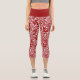 Leggings Capri Patrón Repetidor De Hojas Tropicales Blancas Y Roj