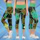 Leggings Capri Personalizado Mandala Verde Negro y Amarillo