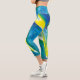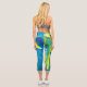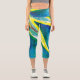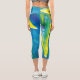 Luminoso y original espacio azul y amarillo y diseño estrella en leggings capri. Perfecto para yoga, gimnasia, deportes, fitness, correr o simplemente para uso diario.