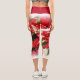 Leggings Capri Poinsettias florales blancas rojas festivas
