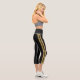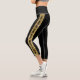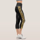 Leyendas capri de crop personalizadas de Purpurina negro y oro con una amplia franja vertical en la pierna con texto personalizado en el medio que puede ser diferente en cada lado. Personalizar con un lema de equipo, mascota, cita favorita, verso, mantra inspirador, nombre de equipo, o añadir tu nombre al repetir por el lado de cada pierna! Ideal para bailar, pom, y para animar uniformes y trajes de bandas de desfile y marcha. El color de la leyenda y las fuentes se pueden cambiar haciendo clic en 'personalizar más adelante'.