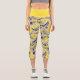 Estas leggings capri presentan un patrón fractal espiral abstracto en amarillo, negro y morado.
