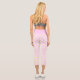 Estas lindas leggings de capri con motivos de flores de margarita retro son un patrón divertido que es genial para clases de yoga o simplemente para descansar. Con una margarita de estilo retro dibujada a mano sobre un fondo rosado.