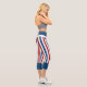 Leggings Capri Rojo, Blanco, Bandas Azules, Capris De Alto Desagu