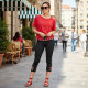 Leggings Capri Rosa roja sobre floral negro