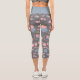 Leggings Capri rosa y gris frutal con patrón de cereza