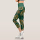 Seamless pattern of gold, jewelry, shiny fern branches and leaves on green, woodland, textured background. Golden fern.
