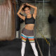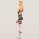 Fondo clásico vintage con líneas naranjas, amarillas, azules, blancas y fondo marrón.