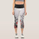 Leggings Capri Stylish Red Black and Grey Leaf Design