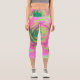 Leggings Capri Suculento rosette de sedum verde limón y rosa