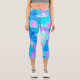 Leggings Capri Suculento sedum subacuático azul y rosa caliente