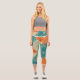Leggings Capri Teal, Orange, and Tan Abstract Flowers