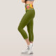 Si te encanta el color verde oliva, entonces te encantará este leggings estilo capri. Este leggings presenta una hermosa cinturilla floral que complementa el leggings verde sólido. La floral se creó a partir de una imagen generada por IA
