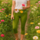 Leggings Capri Verde Oliva con Capris de Cintura Alta Floral