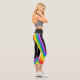 Ya sea que quieras comer o simplemente descansar, te encantará hacerlo en estos pantalones de yoga arco iris. Los capris de altura y estiramiento presentan un arcoiris de estilo abstracto con un fondo negro. Ideal para ir o en el sofá.
