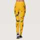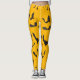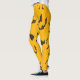 Un par de piernas con piernas amarillas con un patrón de murciélagos negros y arañas, y zapatillas blancas y negras.