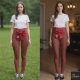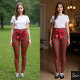 Leggings Christmas Diagonal Stripes Red Green Bow