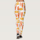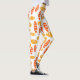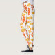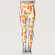 Estas leggings tienen un patrón repetido de ovales en naranja retro y amarillo con ovales blancos dispersos todo sobre un campo de blanco.