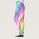 Las rayas arco iris recorren diagonalmente las piernas. Superpuesto, es un patrón de vidrio con plomo creado con fuentes de imagen en blanco.