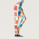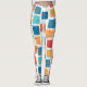 Estas leggings tienen un diseño geométrico de cuadrados en mandarina, amapola, coral y tonos verde azulados dispersos por todo el mundo con sus contornos.