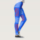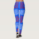 Estas leggings tienen un diseño moderno de mediados de siglo que parece un tejido de líneas rojas y blancas en un campo azul.