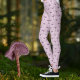 These cute leggings feature cute purple mushrooms in a pattern against light purple, sometimes described as lilac, background. This is great for someone who loves nature and cottagecore designs, and would look good in the yoga studio or under a tunic for fun.