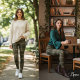 Leggings Dark Khaki Square Plaid Tartan Fabric