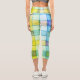 Mi patrón de gingham en amarillo, azul y verde en las leggings capri de las mujeres hace un equipo de entrenamiento súper lindo. En mi colección de tanques hay disponibles las camisetas coincidentes. Este es mi propio diseño hecho a mano, así que no lo encontrarás en ningún otro lugar excepto en mis tiendas.