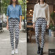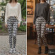 Leggings Diagonal Plaid Monochrome Gray Fine Weave