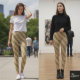 Leggings Diagonal Stripe Gold Silver Metallic Glossy