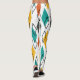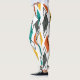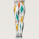 Estas leggings tienen un diseño moderno de mediados de siglo de diamantes en naranja, amarillo, turquesa, gris, y delineados por todos lados en un campo de blanco.