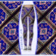 Este patrón antiguo de Soumak incluye motivos usados en los kilims, como ojo, cruz y gancho. Se dice que estos motivos protegen al mal ojo y el bonito medallón central en forma de diamante representa al dragón. Las técnicas utilizadas para crear estas alfombras de tipo tapiz son similares al bordado. La moqueta original tiene unos 140 años y los colores principales son el azul, el rosa y el beige.