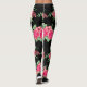 Leggings Elegante Fuchsia Rosa Flor Rosa Negro