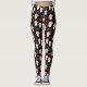 Este es un divertido par de leggings para llevar a estos Navidades El diseño tiene un alegre Santa Claus y está acentuado con arcos y copos de nieve sobre el fondo negro.