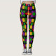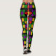 Estas leggings tienen un diseño de historia negra de flores y filas hechas de triángulos y rectángulos.