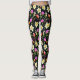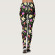 Flores de fantasía en magenta, blanco, naranja y morado sobre un fondo negro crean un hermoso y elegante par de leggings.