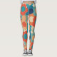 Las leggings tienen un diseño de flores de los años 70 en tonos naranja, azul y crema.