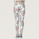 Estas leggings tienen un diseño moderno de mediados de siglo de flores hechas de círculos en tonos rosas, arándanos y beige y líneas negras.