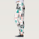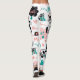 Un par de leggings blancas con un patrón de gatos personalizados, corazones, estrellas, cactus, ratones y las palabras "Meow" y "Cat", usadas por una persona con zapatillas negras y blancas.