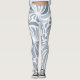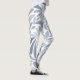 Las piernas están adornadas con una impresión geométrica de color azul claro y gris.