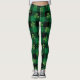 Estas leggings presentan un diseño vibrante y festivo que combina las clásicas manchas con las brillantes rocas de champú. El diseño consiste en cuadrados verdes y negros alternados, algunos de los cuales están llenos de rayas diagonales, creando un fondo dinámico y llamativo. Las rocas de champán verde, dispersas por la arena, aportan un toque de brillo y encanto. Esta combinación única de rocas de seda tradicionales y rocas de champú purpurinoso hace de estas leggings perfectas para celebrar el Día de San Patricio o para añadir un poco de encanto festivo a cualquier conjunto.