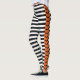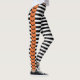 Arranca tus cosas en esta Halloween en este par de leggings con rayas negras y blancas y una larga franja naranja corriendo por el costado de tu pierna con muchos murciélagos.