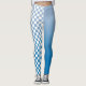 El diseño asimétrico moderno presenta un patrón a cuadros azul y blanco claro a medio sobre una pierna y un gradiente azul claro a medio sobre la otra. El patrón de cuadros tiene blanco al lado de cuadrados de color. Añade esta divertida pieza que atrae la atención a tu armario. Para ver el diseño geométrico de moda de ombré en otros elementos, pulse el enlace "Artes Rocklawn". © Claire E. Skinner, todos los derechos reservados.