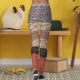 Leggings Grey Brown Black Beige Textile Knit Stripe Pattern