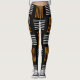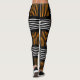Estas leggings tienen un diseño moderno de mediados de siglo que parece un tejido de líneas naranjas y blancas en un campo de negro.