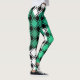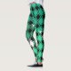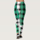 Estas leggings tienen un diseño moderno de mediados de siglo de diamantes negros sólidos dentro de los contornos de diamante negro con triángulos en tonos de verde marino bajo ellos, todo en un campo de blanco.