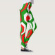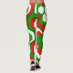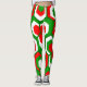 Estas leggings tienen un diseño geométrico Navidad de hexágonos en conjuntos de tres que parecen flores en rojo, blanco y verde.