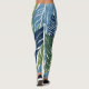 Un diseño de leggings vibrante de inspiración tropical con un patrón exuberante de hojas de plátano sobredimensionadas. La obra de arte muestra una rica paleta de colores de verdes, azules y toques blancos profundos, creando un efecto visual llamativo y energético. Las hojas están representadas en un estilo estilizado y gráfico, añadiendo un toque moderno al motivo botánico clásico. Estas piernas son perfectas para añadir un toque natural a tu armario, ya sea que estés en casa o en el gimnasio.