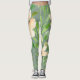 Leggings Hojas verdes, Flores rosas: acuarela.
