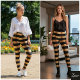 Leggings Horizontal Stripe Black Gold Metallic Glossy